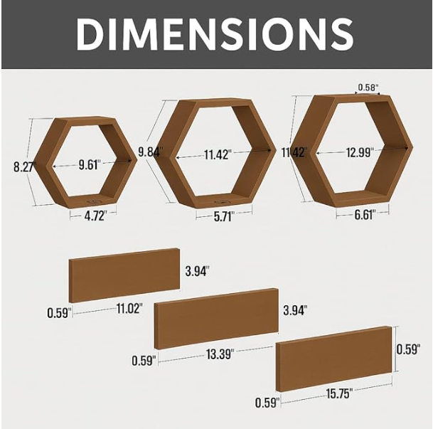 Decorative intersecting floating shelves Made of durable MDF laminate. It has a beautiful white finish that suits almost any decor. Easy to mount with all necessary hardware Included. Hardware is not visible when mounted